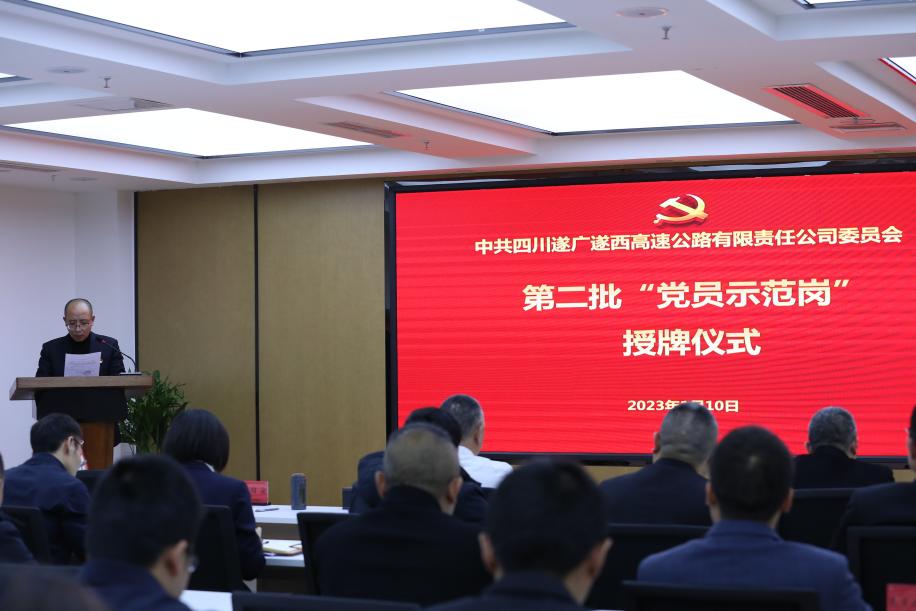 1月10日,遂广遂西公司举行第二批“党员示范岗”授牌仪式。公司党委书记、执行董事余万福出席授牌仪式并讲话,党委副书记、总经理李绍安,党委委员、纪委书记金嵩出席活动。授牌仪式由党群工作部(统战部、人力资源部)部长欧琳主持。公司全体中层管理人员,各党支部书记及委员、本部党支部全体党员、第二批“党员示范岗”党员,共40余人参加授牌仪式。
